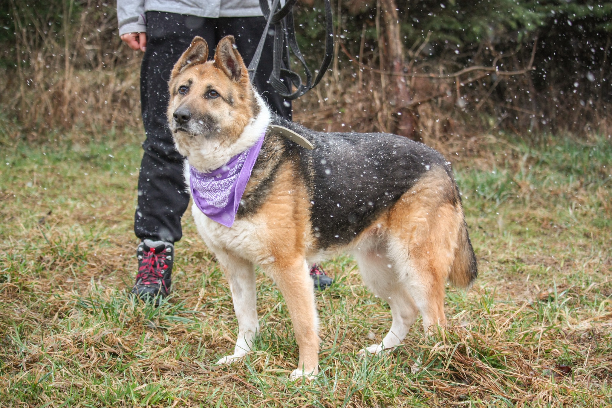 Giza została oddana schroniska, choć zdecydowanie nie jest to miejsce dla takiej suni jak ona. Jest naprawdę wspaniała, kontaktowa i szuka bliskości i uwagi człowieka. Giza uwielbia być przy swoim przewodniku, reaguje na niego, obserwuje go i chętnie współpracuje.