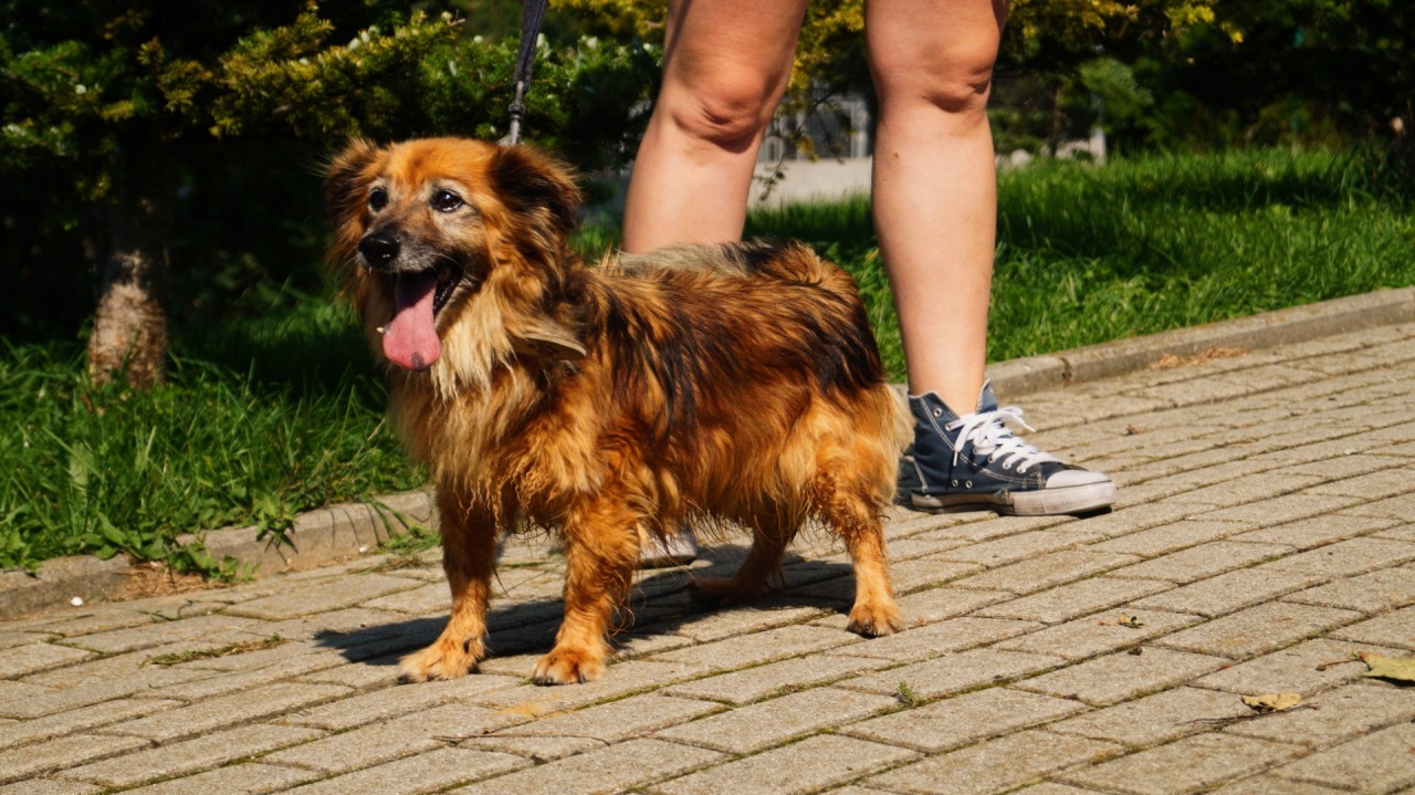 KAJTUŚ - starszy psiak oddany przez poprzednich właścicieli do schroniska. Zawsze jest wesoły, chętny na spacerki. Wygląda pospolicie - jak każdy inny kundelek z dłuższą sierścią, ale jemu indywidualnego wyglądu nadają wystające dolne kły, przez co wygląda wręcz śmiesznie ;) Kajtuś nie ma w sobie ani grama agresji, ani do ludzi, ani do psów, on dostosuje się do każdych warunków, byleby tylko zmienić adres zamieszkania.