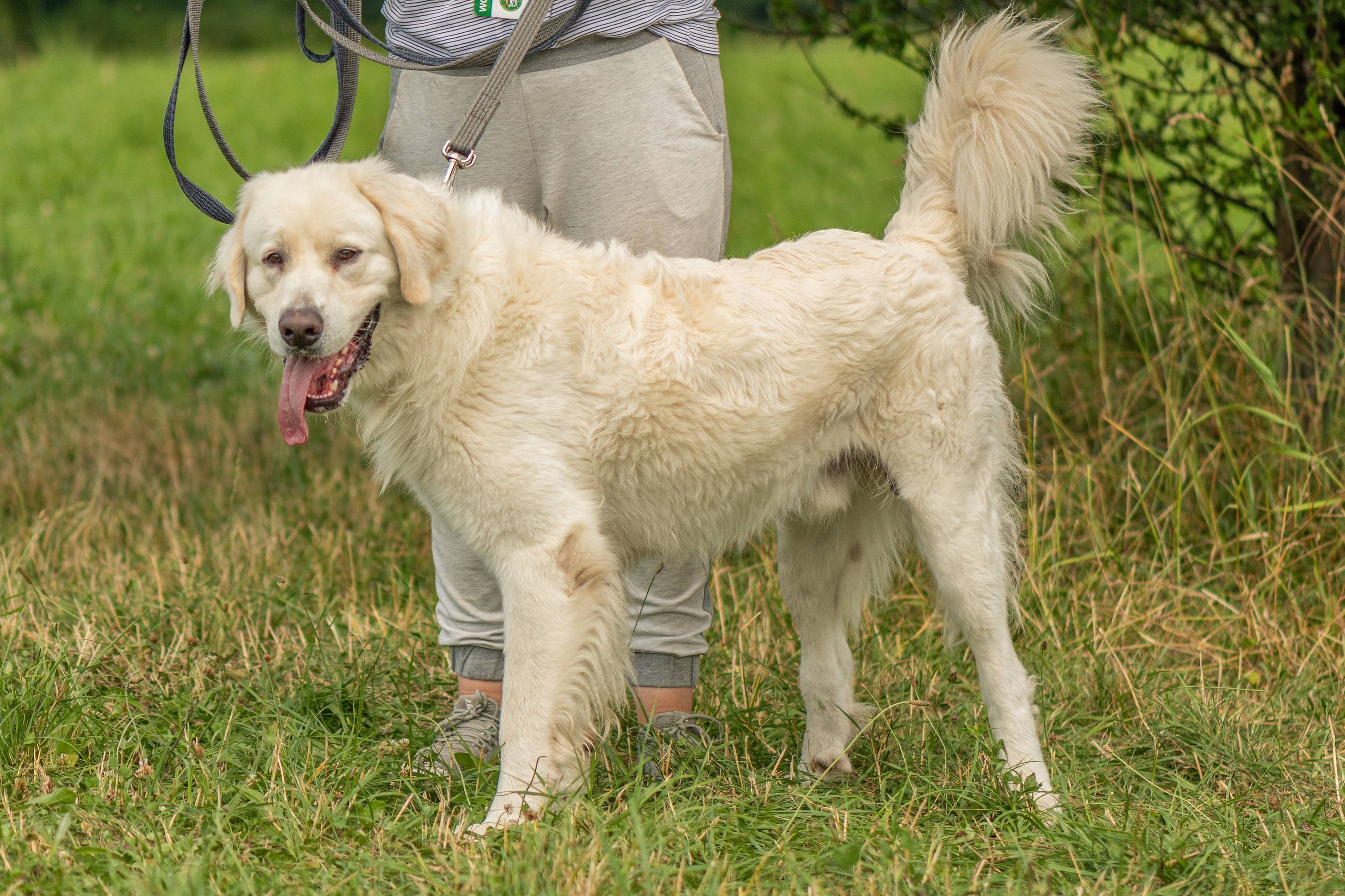 TYGRYS to nowy psiak w naszym schronisku. Został niedawno oddany z łatką agresora. Czy to prawda? Zdecydowanie nie… TYGRYS na początku pobytu u nas był bardzo wystraszony i zdezorientowany całą sytuacją. Teraz to zupełnie inny pies. Został oddany z imieniem Tygrys, jednak to zdecydowanie do niego nie pasuje, dlatego pieszczotliwie jest nazywany teraz BENIO. Jego przeszłość odkreślamy teraz grubą linią. BENIO u nas zaczyna wszystko na nowo. BENIO to typowy przedstawiciel psa w typie podhalana. Ma niespełna 1,5 roku (rok urodzenia ok 2020) i już tyle przeżył. Jak to na początku, był kochaną białą kuleczką, którą wszyscy kochali. Z biegiem czasu wyrósł na dużego psa, który bez żadnych postawionych mu zasad wszedł właścicielom na głowę. BENIO jak większość podhalanów, jest terytorialny i jak trzeba, to potrafi zaszczekać. Jednak to nie jest żadna agresja, a jego natura i instynkt. BENIO z pewnością nie jest psem, który potrzebuje uwagi człowieka przez cały czas, potrzebuje własnej przestrzeni i spokoju. Szukamy dla BENIA domu z ogrodem, który jest wręcz wskazany. Jednak nie ma to być jego miejsce pobytu przez 24h! BENIO musi mieć swobodny dostęp do domu, gdzie będzie jego legowisko i miska z wodą i jedzeniem. Jeżeli wybierze życie na ogrodzie, to już jego wybór. Mimo wszystko nie ma mowy o kojcu lub łańcuchu. BENIO z pewnością musi trafić do młodych osób, które będą miały siłę go utrzymać i zabierać na spacery. Jak przystało na młodego psiaka, BENIO potrzebuje ruchu. Nie wystarczy mu ogród i odrobina zabawy w ciągu dnia. BENIO nie powinien także trafić do rodziny z dziećmi. Ze względu na jego masę i siłę, tak będzie bezpieczniej. Przy zabawie mógłby zrobić dziecku krzywdę i to niekoniecznie świadomie. BENIO jeszcze w niektórych sytuacjach jest wylękniony, ale mamy nadzieję, że ten lęk szybko minie. Jeszcze co wiemy i możemy dodać, to fakt, że BENIO boi się burzy. Na ten czas z pewnością będzie musiał mieć wsparcie w rodzinie podczas burzy.