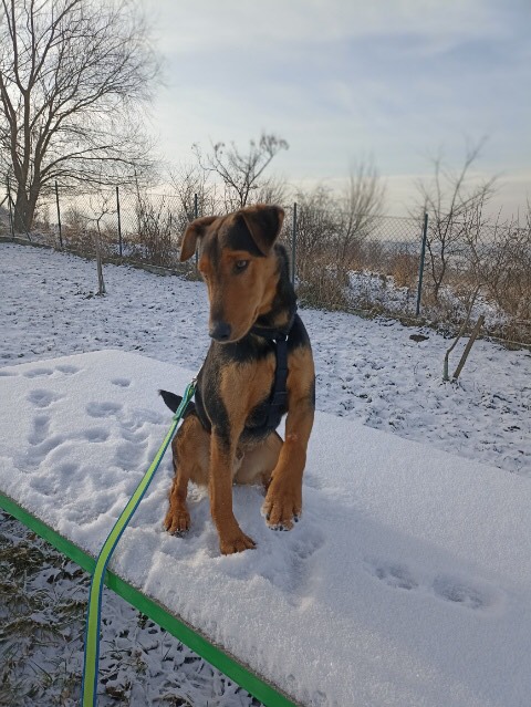 Mimo przeciwności szybko się uczy i bardzo chętnie współpracuje z człowiekiem. Zna podstawowe komendy i sprawnie je wykonuje :)