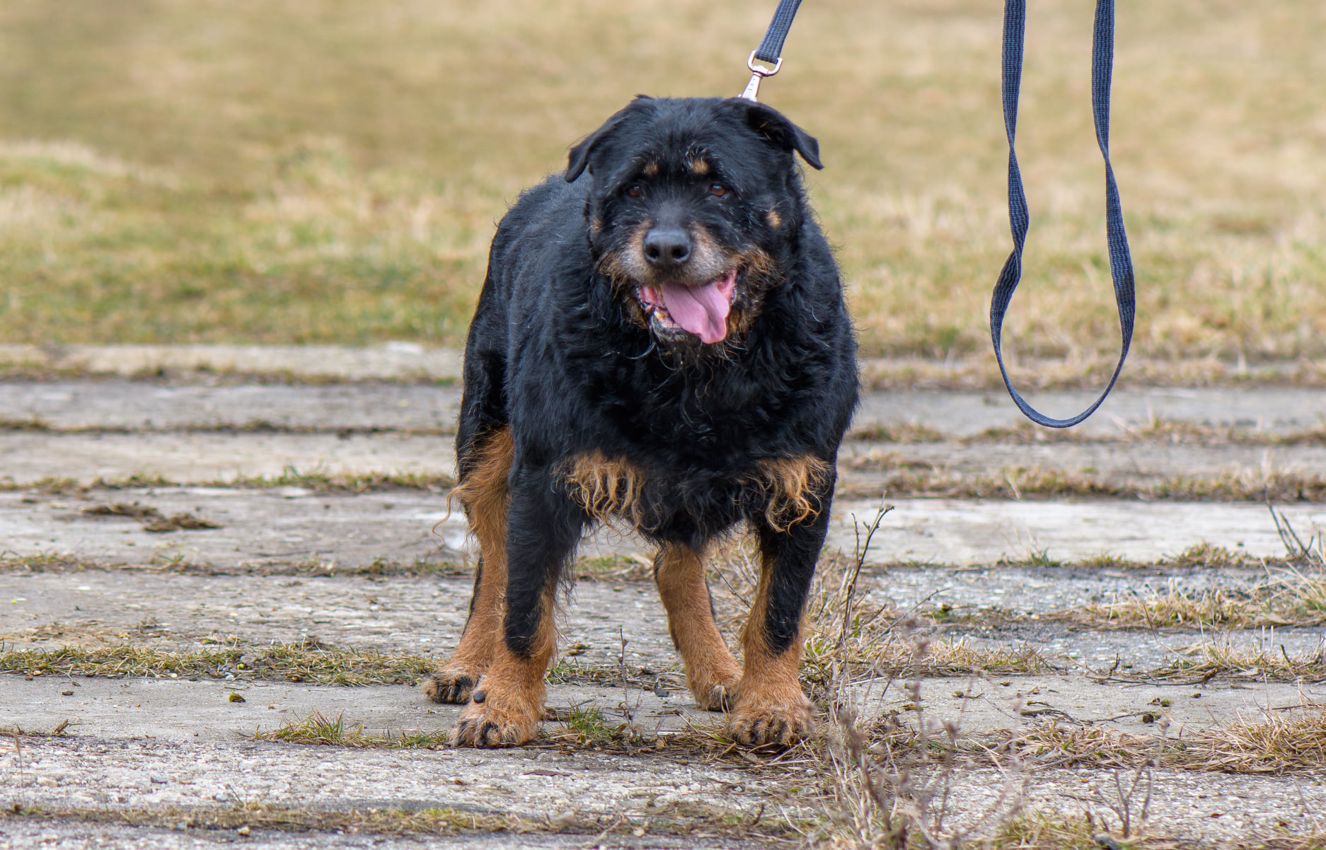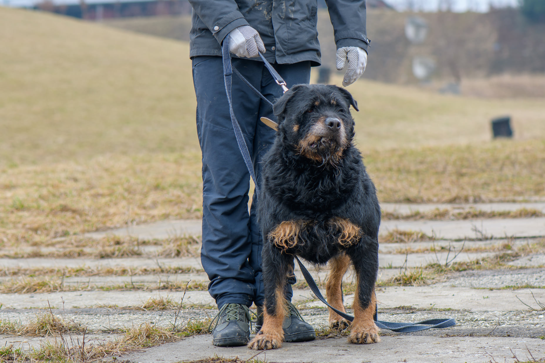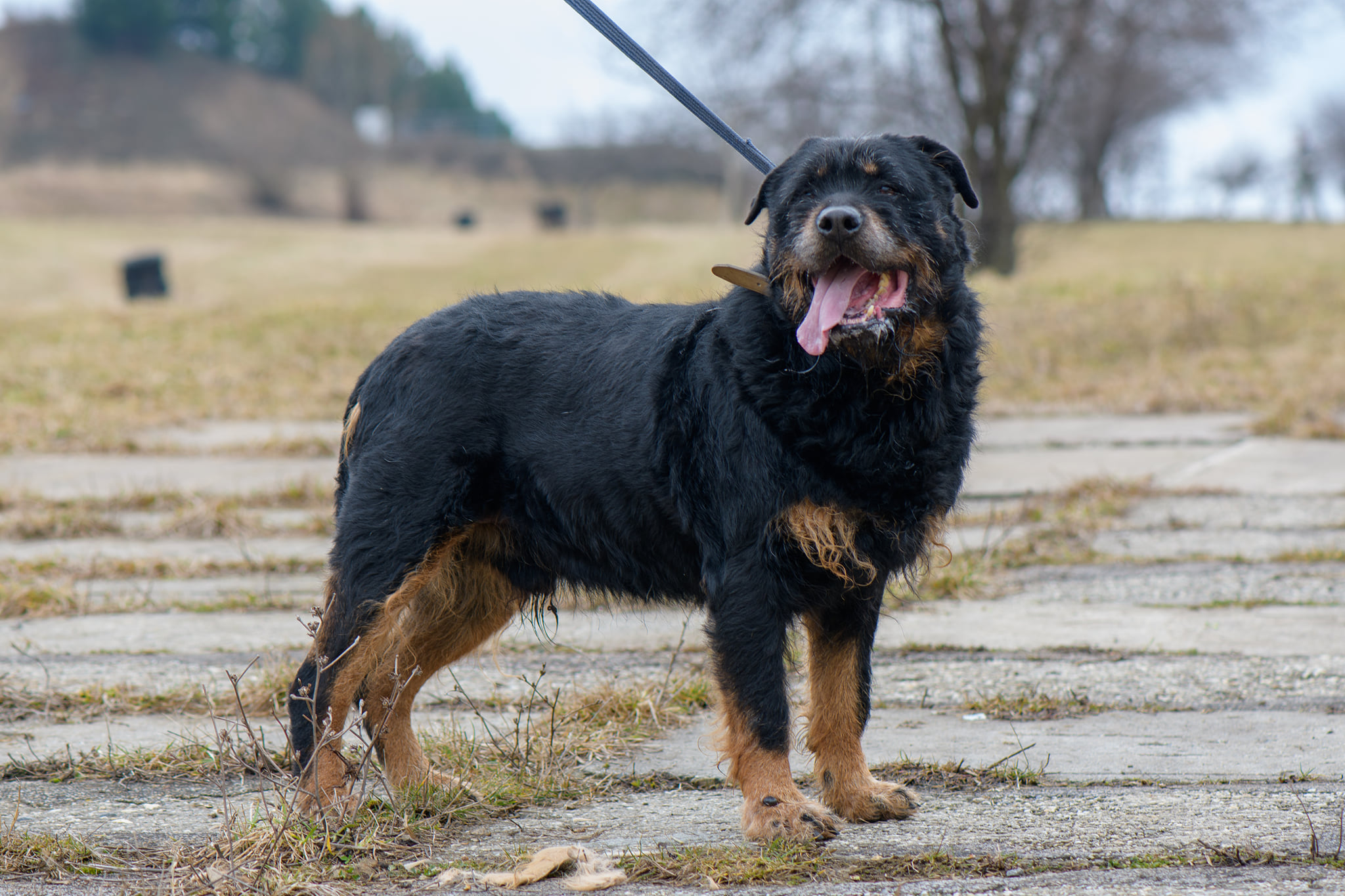 Roky to około 6/7-letni pies w typie rottweilera (ur. ok. 2015 roku) . Został jakiś czas temu znaleziony w Kamieniołomach w Kozach, a teraz jest już do adopcji. Roky jak widać, nie należy do najmniejszych psów. Jest dużym i silnym psem. Przyszli właściciele muszą mieć to na uwadze. Roky pomimo, że jest spokojnym i zrównoważonym psem, to ma ogromną masę. Nie musi się wyrywać w każdą stronę, aby kogoś pociągnąć. On po prostu idzie:) Roky zapewne budzi respekt, ale tak naprawdę to cudowny i kochany pies. Nie wykazuje ani grama agresji wobec człowieka. Myślimy, że nawet mógłby mieszkać z dziećmi i nie byłoby większego problemu. Oczywiście przy zachowaniu zdrowego rozsądku. Niestety nie znamy jego stosunku do kotów. Bardziej skłaniamy się, aby był jedynym zwierzęciem w domu. Roky nie wymaga dużej aktywności fizycznej. Nie jest typem psiego sportowca. Dom z ogrodem byłby tutaj wskazany, aby Roky mógł sobie spędzać czas na świeżym powietrzu. Na początku właściciele muszą mieć na uwadze, że Roky musi być na karmie light, aby trochę zrzucił wagi. Niestety są to psy, które szybko przybierają na wadze a później odbija się to na ich zdrowiu.