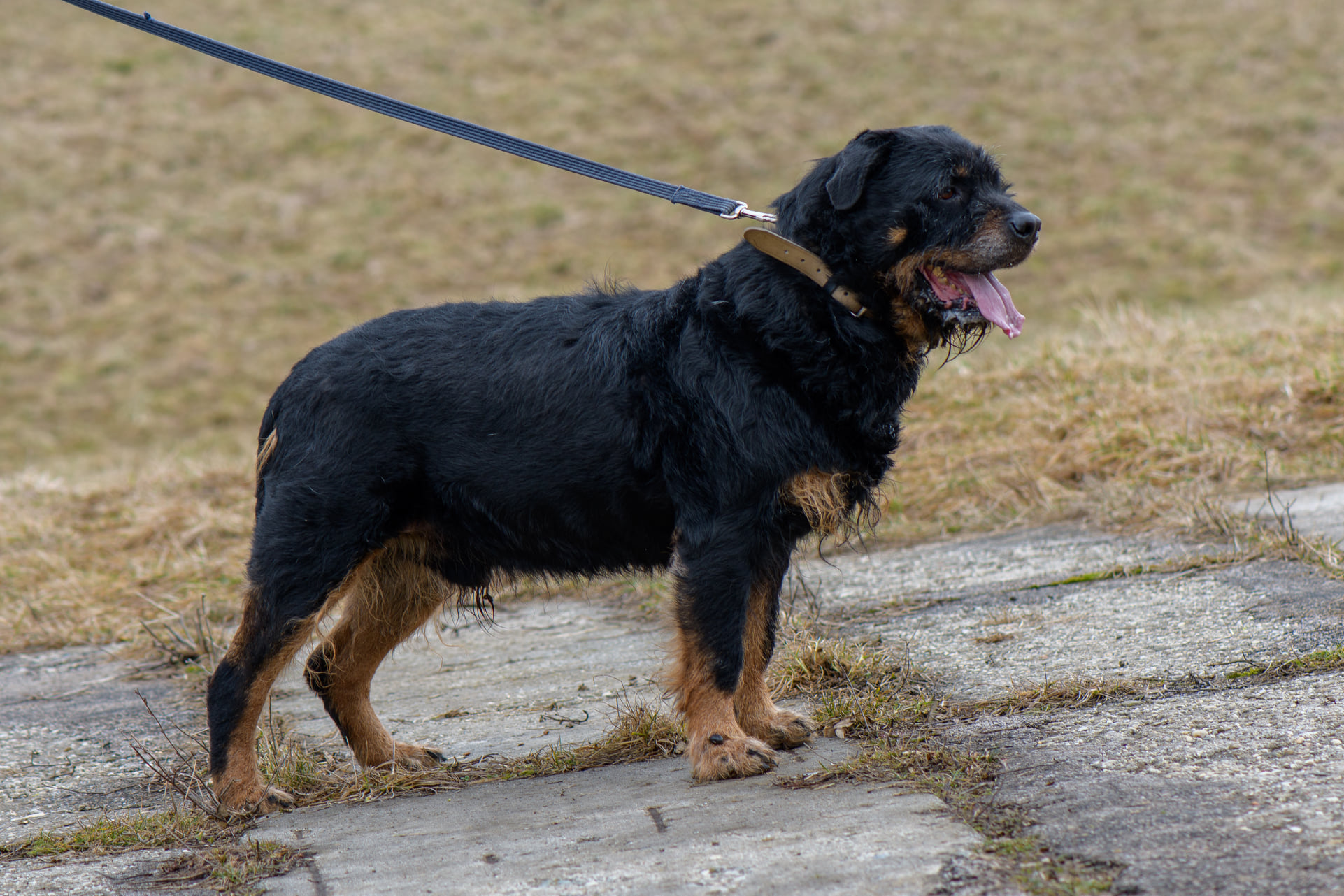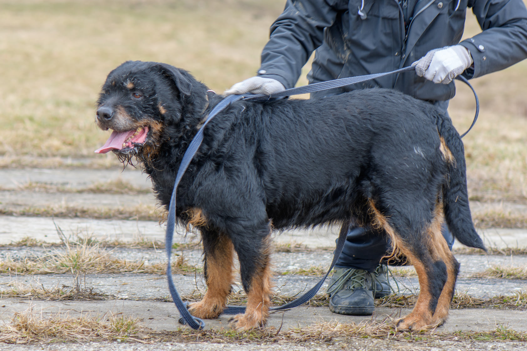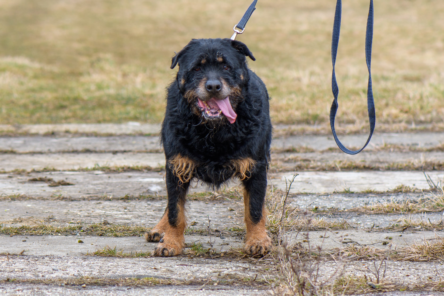 Roky to około 6/7-letni pies w typie rottweilera (ur. ok. 2015 roku) . Został jakiś czas temu znaleziony w Kamieniołomach w Kozach, a teraz jest już do adopcji. Roky jak widać, nie należy do najmniejszych psów. Jest dużym i silnym psem. Przyszli właściciele muszą mieć to na uwadze. Roky pomimo, że jest spokojnym i zrównoważonym psem, to ma ogromną masę. Nie musi się wyrywać w każdą stronę, aby kogoś pociągnąć. On po prostu idzie:) Roky zapewne budzi respekt, ale tak naprawdę to cudowny i kochany pies. Nie wykazuje ani grama agresji wobec człowieka. Myślimy, że nawet mógłby mieszkać z dziećmi i nie byłoby większego problemu. Oczywiście przy zachowaniu zdrowego rozsądku. Niestety nie znamy jego stosunku do kotów. Bardziej skłaniamy się, aby był jedynym zwierzęciem w domu. Roky nie wymaga dużej aktywności fizycznej. Nie jest typem psiego sportowca. Dom z ogrodem byłby tutaj wskazany, aby Roky mógł sobie spędzać czas na świeżym powietrzu. Na początku właściciele muszą mieć na uwadze, że Roky musi być na karmie light, aby trochę zrzucił wagi. Niestety są to psy, które szybko przybierają na wadze a później odbija się to na ich zdrowiu.