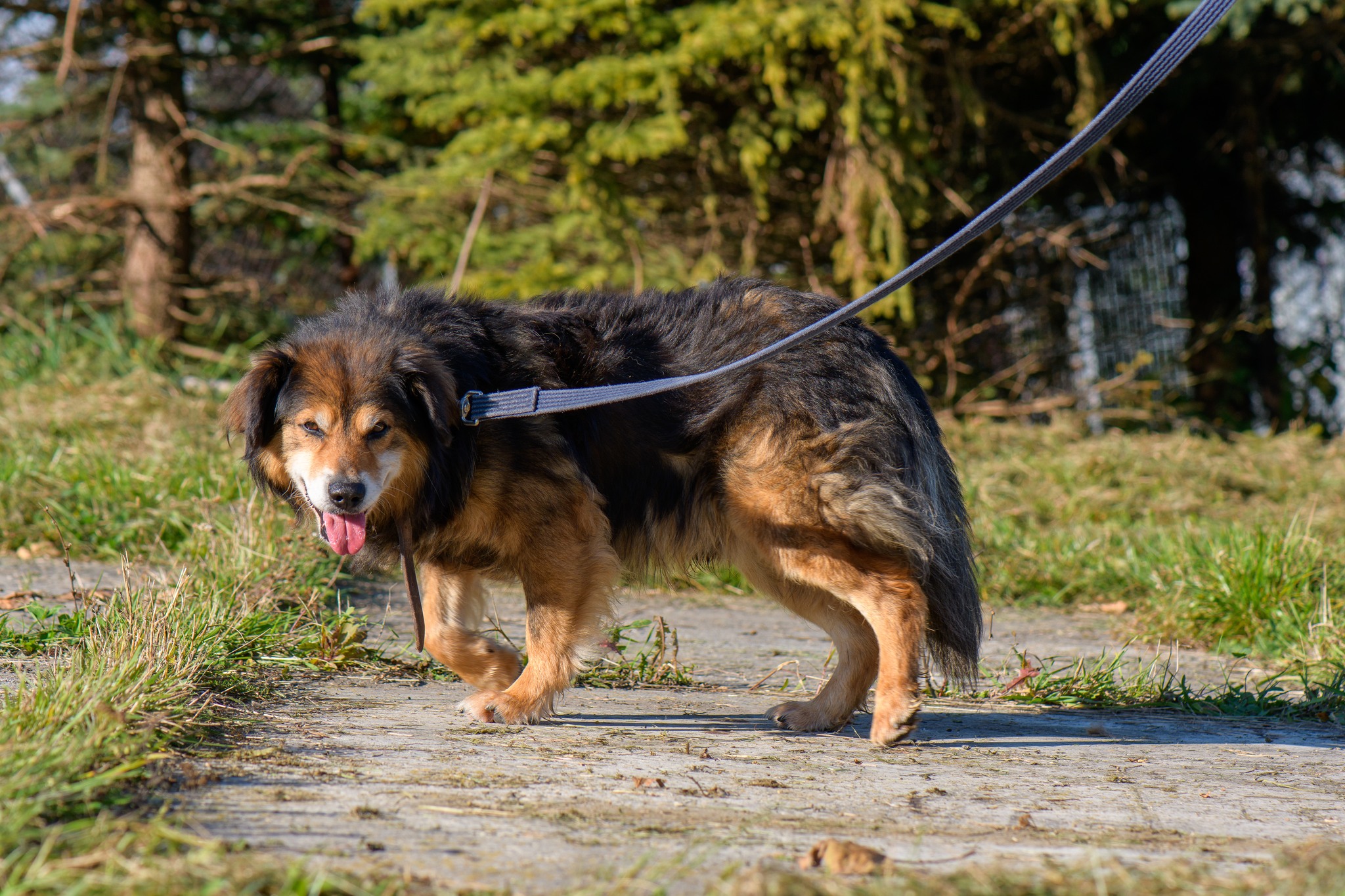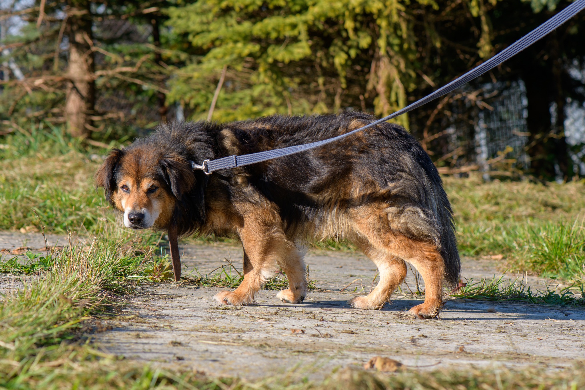 GROSZEK jest starszym psem (ur ok 2012 roku), który trafił do schroniska po odebraniu go właścicielowi, który podobno źle się nim zajmował. Niestety jak przystało na starszego psa, który nagle znalazł się w schroniskowym boksie, trochę sobie nie radzi. Często sprawia wrażenie, że nie wie co się dzieje dookoła niego. GROSZEK jest psem średniej wielkości, bardzo spokojnym i zrównoważonym. Z psami nie wchodzi z żadne konflikty, dość dobrze znosi ich towarzystwo. GROSZEK to idealny kandydat dla osoby starszej, która większość czasu spędza w domu. Psiak nie wymaga żadnych intensywnych spacerów czy zabaw. Raczej nie nadaje się do domu z malutkimi dziećmi. GROSZEK na stare lata potrzebuje spokoju i ciszy. Może na początku jest trochę wycofany w kontakcie z człowiekiem, lecz po chwili się to zmienia. On po prostu potrzebuje więcej czasu aby się odnaleźć. GROSZEK bardzo ładnie zachowuje się na spacerze, więc każda osoba jest w stanie sobie z nim poradzić.