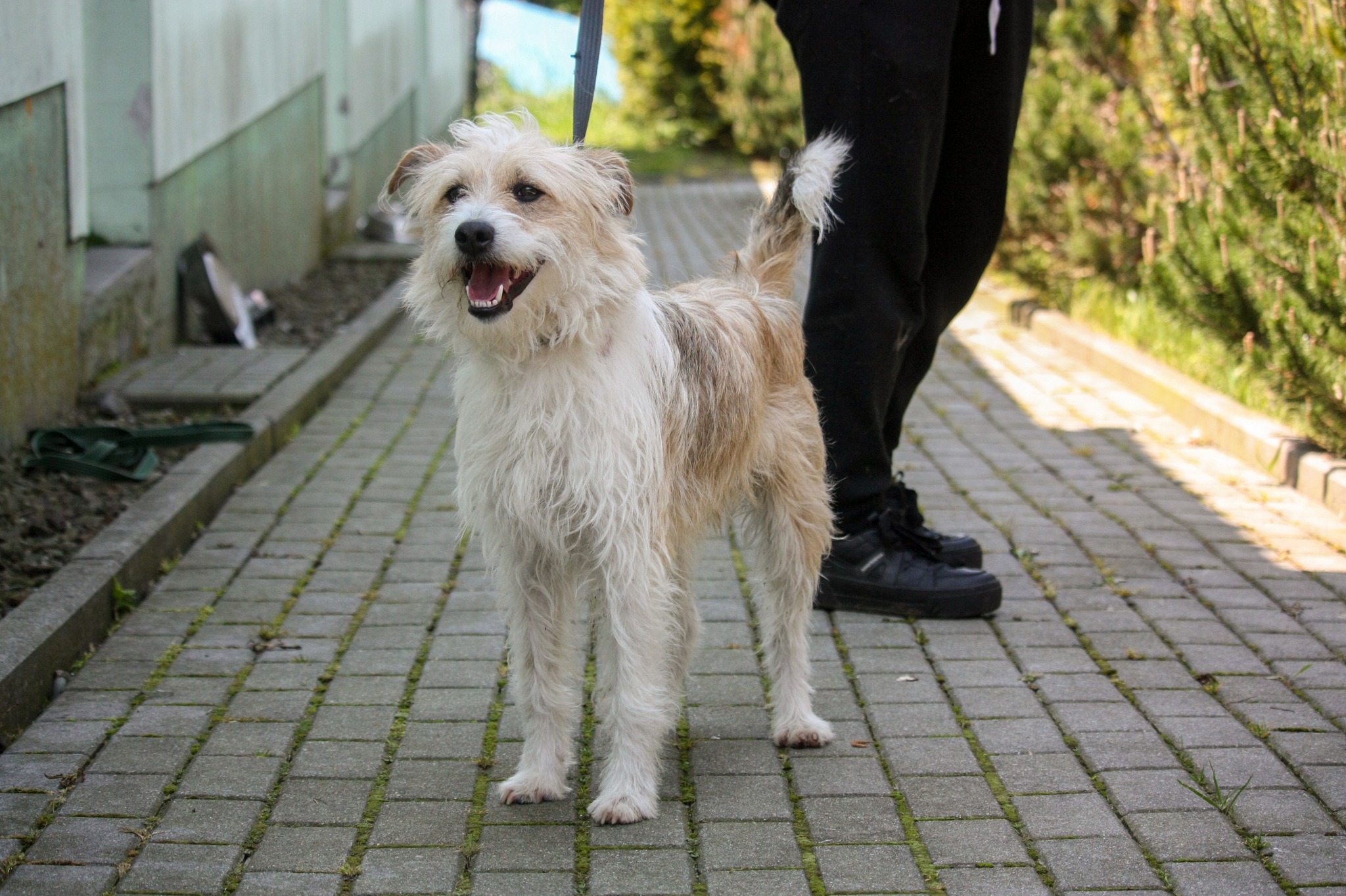 LOPEZ jest kolejnym młodziakiem w schronisku. Po przyjściu do schroniska, został oceniony na około 2 lata (ur. ok 2021 roku). LOPEZ to wyjątkowo ruchliwy i szalony psiak. Po wyjściu z boksu od razu wybija się do góry i zaczyna skakać po człowieku. Oczywiście w pozytywnym kontekście. Nie wykazuje żadnej agresji wobec ludzi. Polecamy go do rodziny młodej i pełnej energii, jak on. W przypadku adopcji do domu, w którym są dzieci, to raczej powinny być one starsze (6+). LOPEZ ze względu na swoją energię i skoczność, mniejszym dzieciom mógłby zrobić krzywdę. Dobrze byłoby w domu popracować nad jego emocjami i pobudzeniem. Nie znamy jeszcze dobrze jego nastawienia względem innych psów. Na spacerach nie wyrywa się w ich stronę z agresją. Jest po prostu zainteresowany, jak większość. Przy adopcji do drugiego psa, będą wskazane spacery zapoznawcze. Psiaki muszą się dobrze poznać, aby późniejsze wprowadzenie do domu było łatwiejsze.