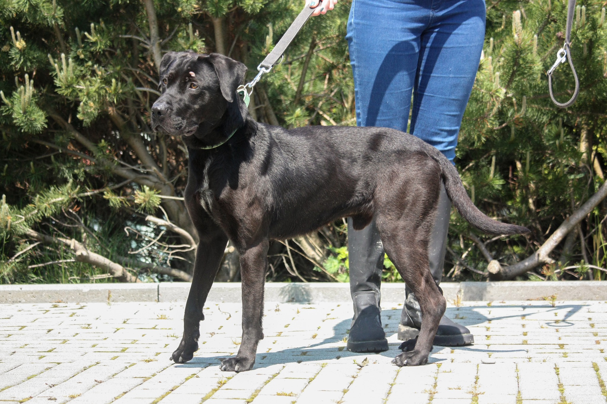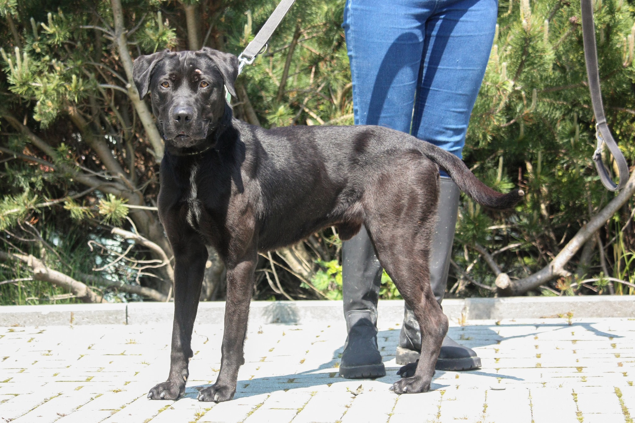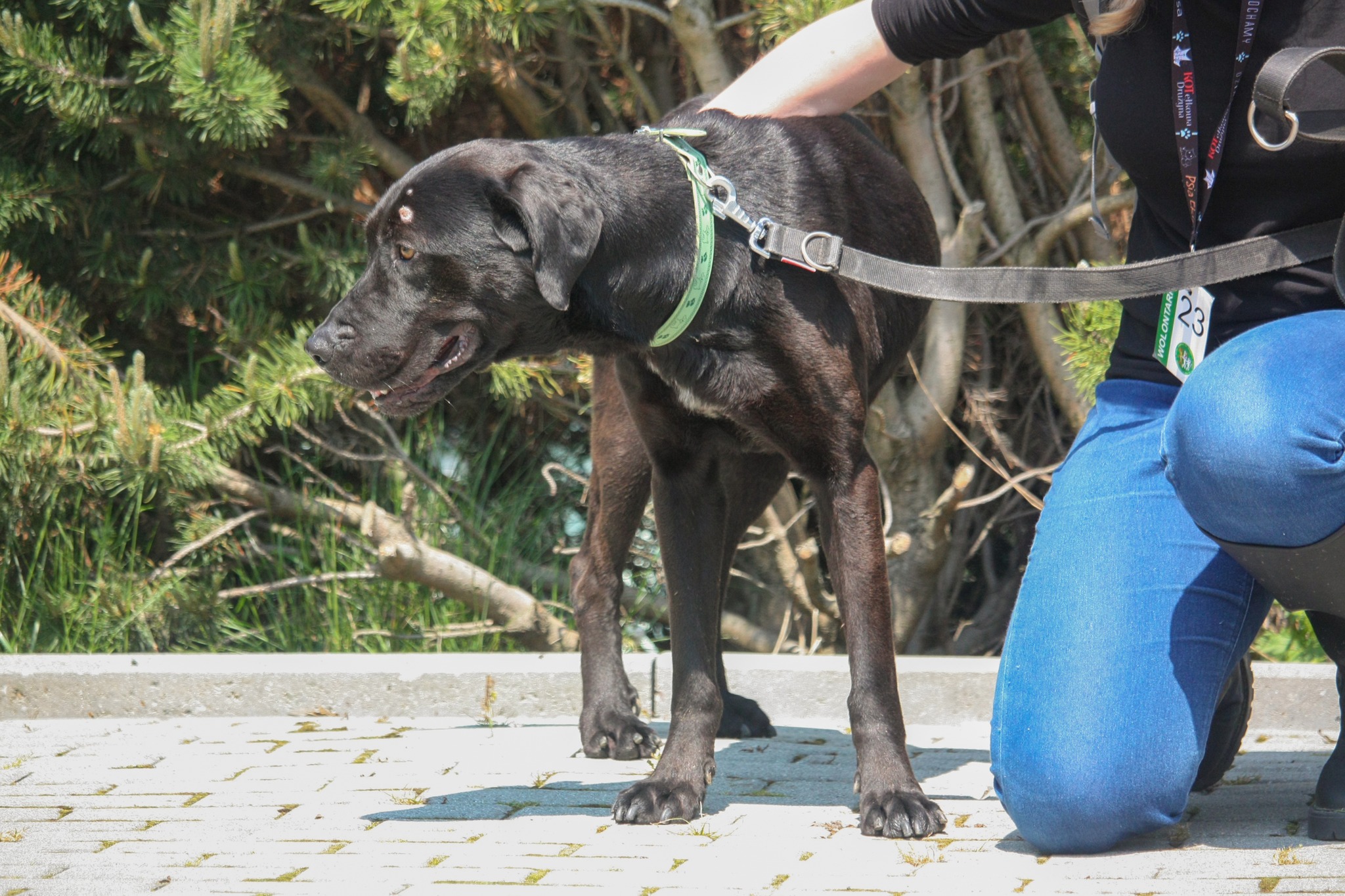 TYTUS jest w schronisku od niedawna. Ma około 4 lat (ur. ok 2019 roku) i dał się poznać jako rewelacyjny pies. Bardzo pozytywnie i łagodnie nastawiony do człowieka. Lgnie do człowieka i domaga się z nim kontaktu. Przytulasy i głaskanie nie stanowią żadnego problemu. Widać, że bardzo mu tego brakuje. TYTUS w tym wszystkim jest opanowany i ostrożny. Na spacerach zachowuje się niemalże wzorowo. Oczywiście zdarzy się mu pociągnąć, ale jest to zrozumiałe, gdyż nie wychodzi na codzienne spacery, tylko parę razy na tydzień. Przy odrobinie pracy i systematyczności, szybko się tego oduczy i każdy spacer będzie przyjemnością dla obu stron. Wydaje nam się, że TYTUS może trafić do rodziny, w której są dzieci (6+). Jednak przed podjęciem takiej decyzji, wskazany będzie spacer zapoznawczy z całą rodziną. TYTUS jest zaciekawiony innymi psami, ale bez oznak agresji. Jeżeli miałby zamieszkać z drugim psem, także nalegamy na wspólny spacer przed adopcją, gdyż w boksie przebywa aktualnie sam i nie wiemy, jak dokładnie zachowa się względem drugiego psa.