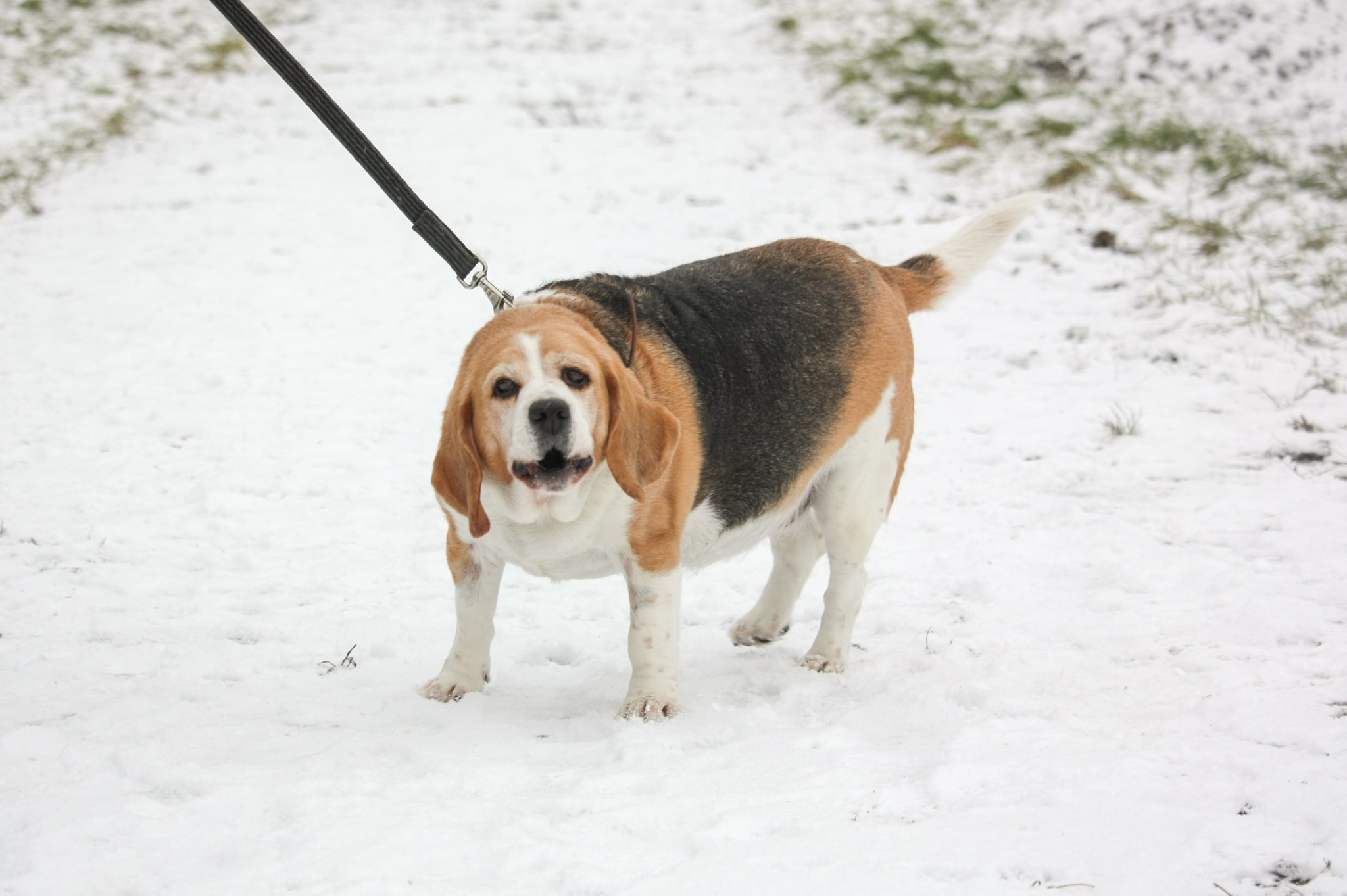 ŁATEK jest psem w typie rasy beagle. Niestety do schroniska trafił w bardzo kiepskiej formie. Ma ogromną nadwagę, która z kolei może odbić się na jego zdrowiu. ŁATEK potrzebuje sporej dawki ruchu, która będzie odpowiednio dopasowana do jego możliwości. Z pewnością musi być na diecie i specjalistycznej karmie, która pomoże w zrzuceniu kilku kilogramów. ŁATEK może zamieszkać w bloku, jednak warto wziąć pod uwagę liczbę schodów, które będzie musiał pokonać. Piesek na pewno nie wyjdzie na 4 piętro kilka razy dziennie i o własnych siłach ;) ŁATEK ma około 8 lat (ur. ok 2016 rok). Nie wykazuje agresji wobec człowieka. Podejrzewamy, że mógłby zamieszkać w domu, w którym są dzieci. Oczywiście, biorąc pod uwagę, że pies nie jest zabawką i należy respektować jego granice. ŁATEK po wcześniejszym zapoznaniu i spacerach równoległych mógłby zamieszkać z drugim psem.