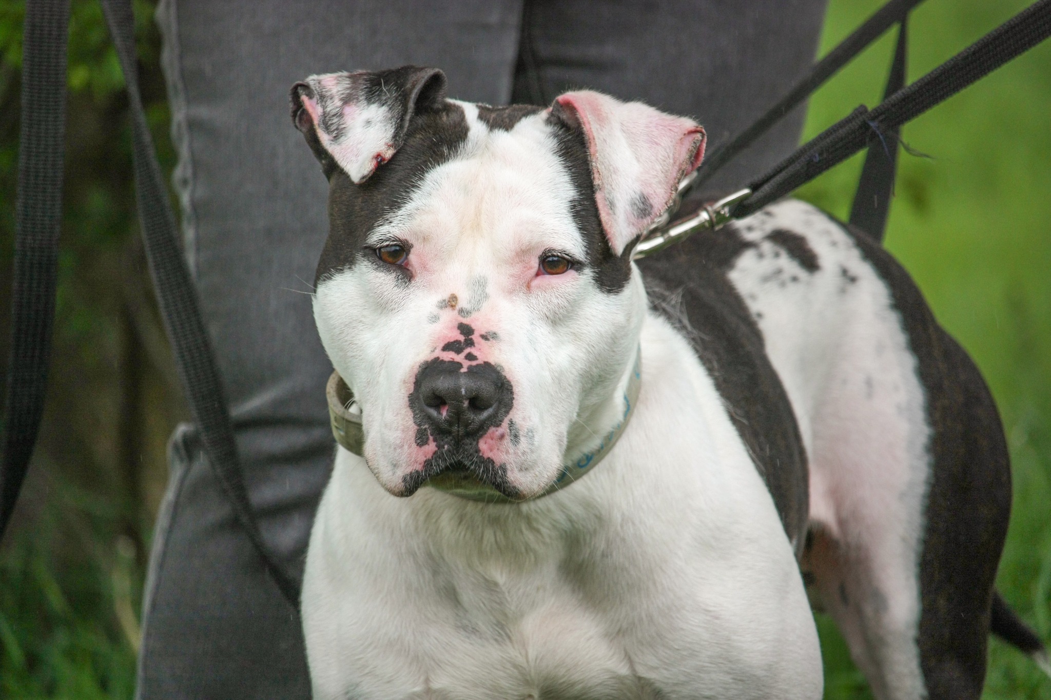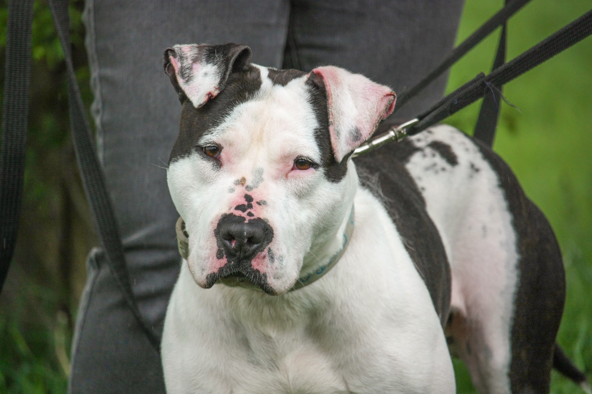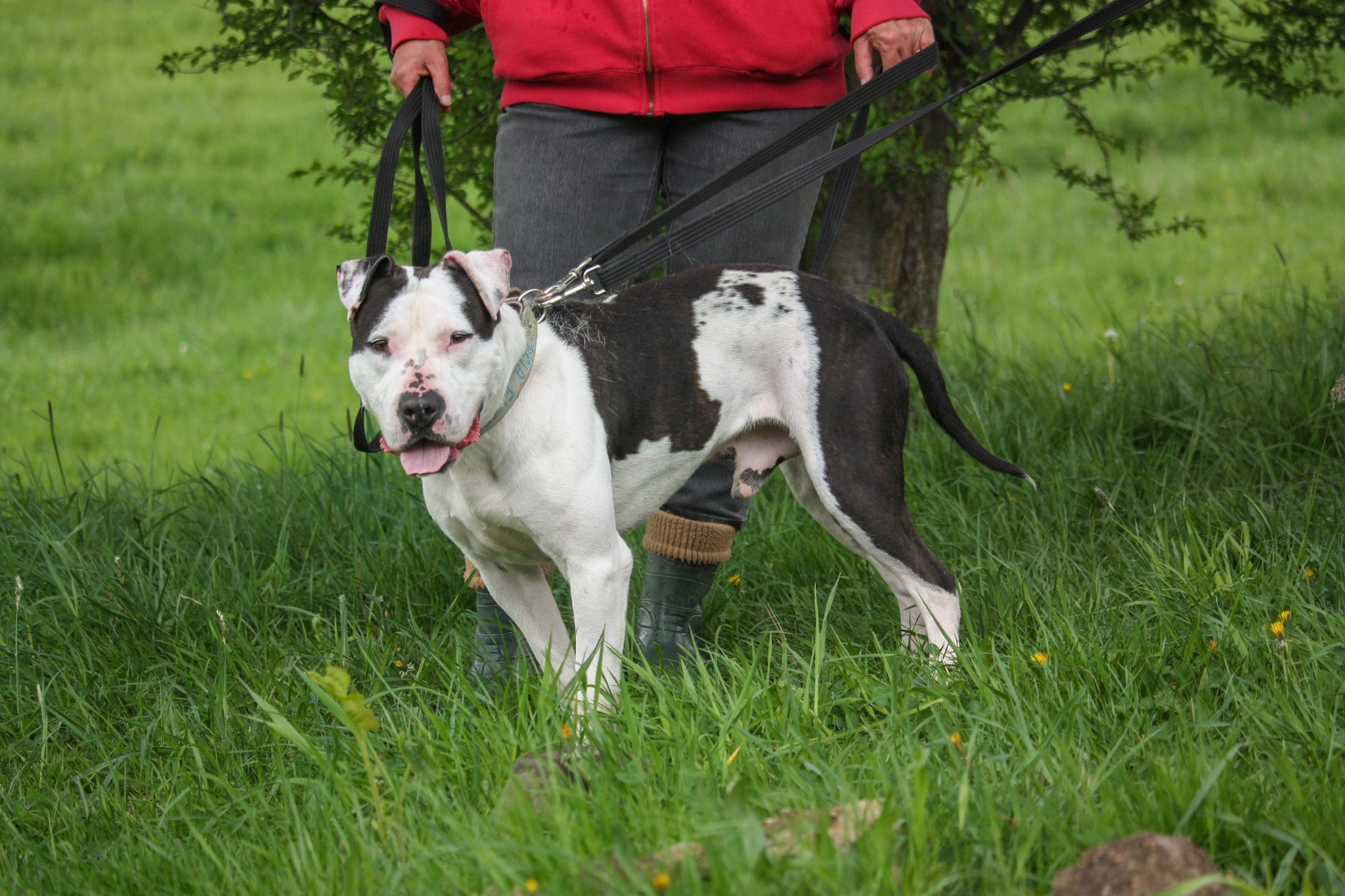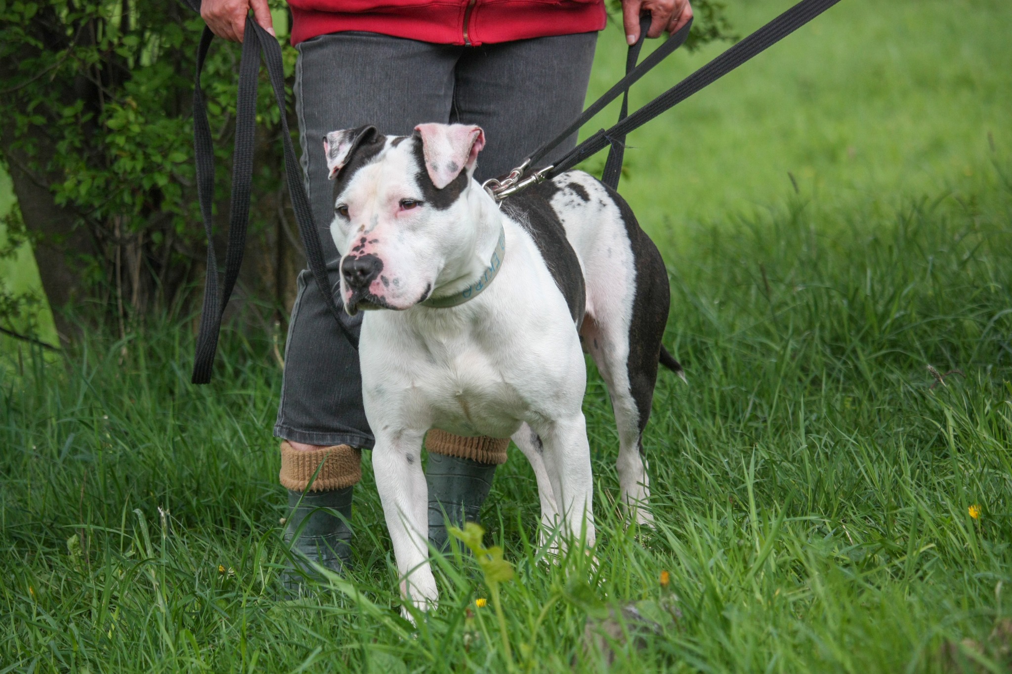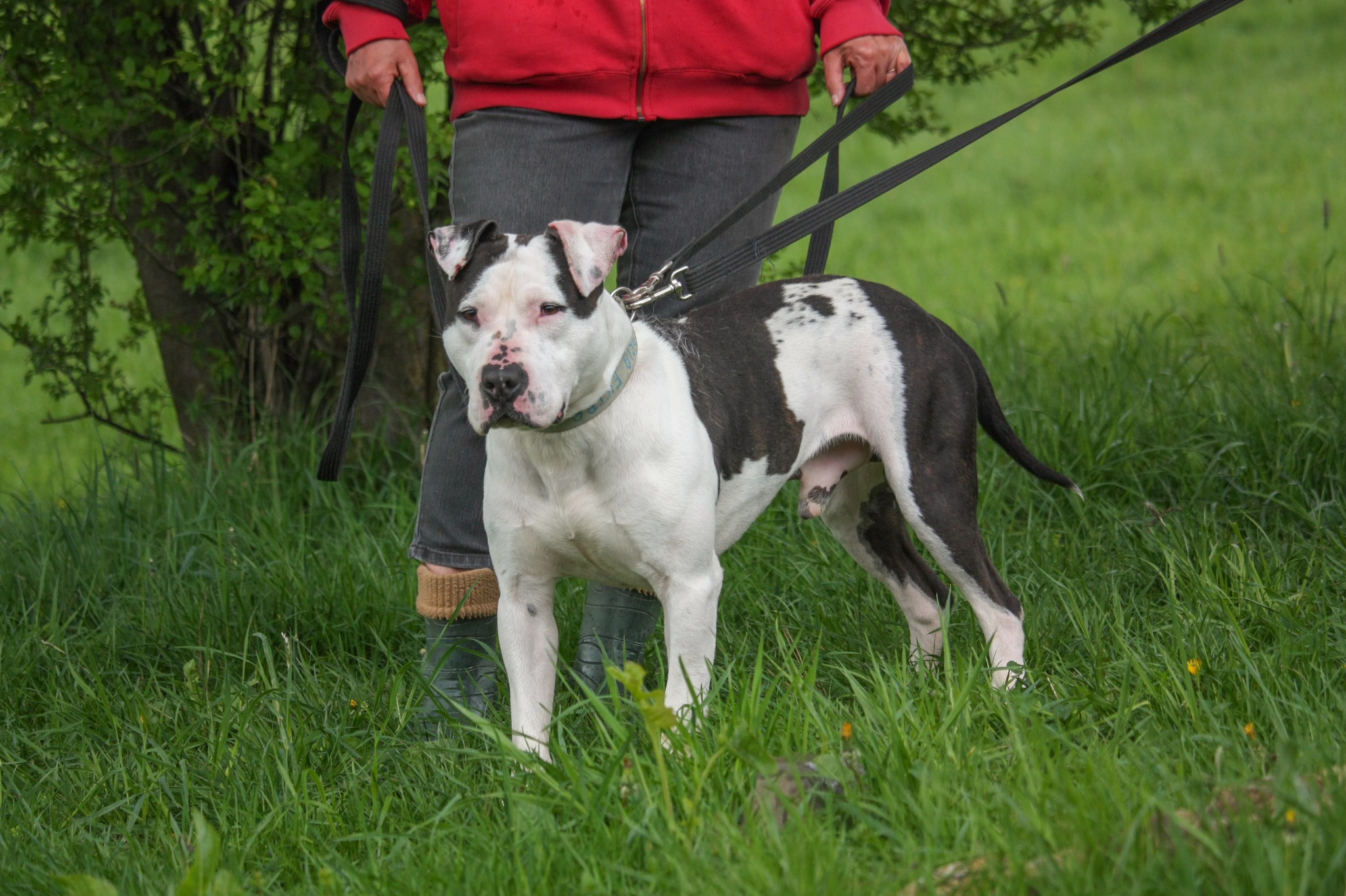Frodo jest młodym psem w typie rasy TTB (ur. ok. 2021rok). Został oddany wraz z drugim psem, z którym mieszkał. Frodo jest bardzo spragniony kontaktu z człowiekiem i za każdym razem wypatruje pracowników lub wolontariuszy z boksu. Zawsze roznosi go energia i domaga się uwagi. Bardzo szybko potrafi się też wyciszyć i zejść z wysokich emocji. Spacer nie należy do spokojnych, ponieważ Frodo ma sporo siły. Jeżeli coś go zaciekawi, to potrafi mocno pociągnąć. Przyszli właściciele będą musieli popracować nad spokojem podczas spaceru i chodzeniem na luźnej smyczy. W kontaktach z innymi psami bywa różnie. Z daleka ładnie odpuszcza i podąża za człowiekiem, jednak bliski kontakt jest dla niego trudny i bardzo pobudzający. Przed adopcją do drugiego psa na pewno będzie trzeba umówić się na kilka spacerów zapoznawczych. Nie znamy do końca jego reakcji na małe dzieci, więc w kontaktach z nimi, należy zachować ostrożność i zdrowy rozsądek. Frodo poleca się do adopcji i mamy nadzieję, że już niebawem zmieni adres zamieszkania.