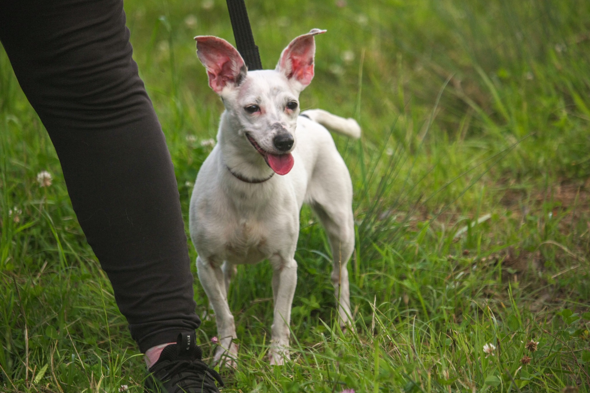 Muszka została przywieziona z Wojkowic w dniu 13.05.24 r. Muszka jest filigranową sunią, której początkowo trudno było odnaleźć się w schroniskowej rzeczywistości. W pierwszym kontakcie unikała człowieka. Jednak po bliższym poznaniu bardzo lgnie do ludzi, których zna i prosi o wsparcie. Chętnie wchodzi na kolana kierując bardzo wyraźny komunikat „zabierz mnie stąd!â€. Muszka uwielbia zabawy z człowiekiem, kocha piłki i szarpaki i jak kogoś pozna i poczuje się przy nim bezpiecznie, nie chce go już wypuścić. Muszka jest psem bardzo wrażliwym i najlepiej odnajdzie się w spokojnych warunkach u osoby raczej o łagodnym usposobieniu, ale stanowczej, która będzie umiała postawić jasne granice wymagając od psa samodzielności i da poczucie bezpieczeństwa. W tym celu Muszce potrzebne będą codzienne rytuały i względnie poukładana rzeczywistość.