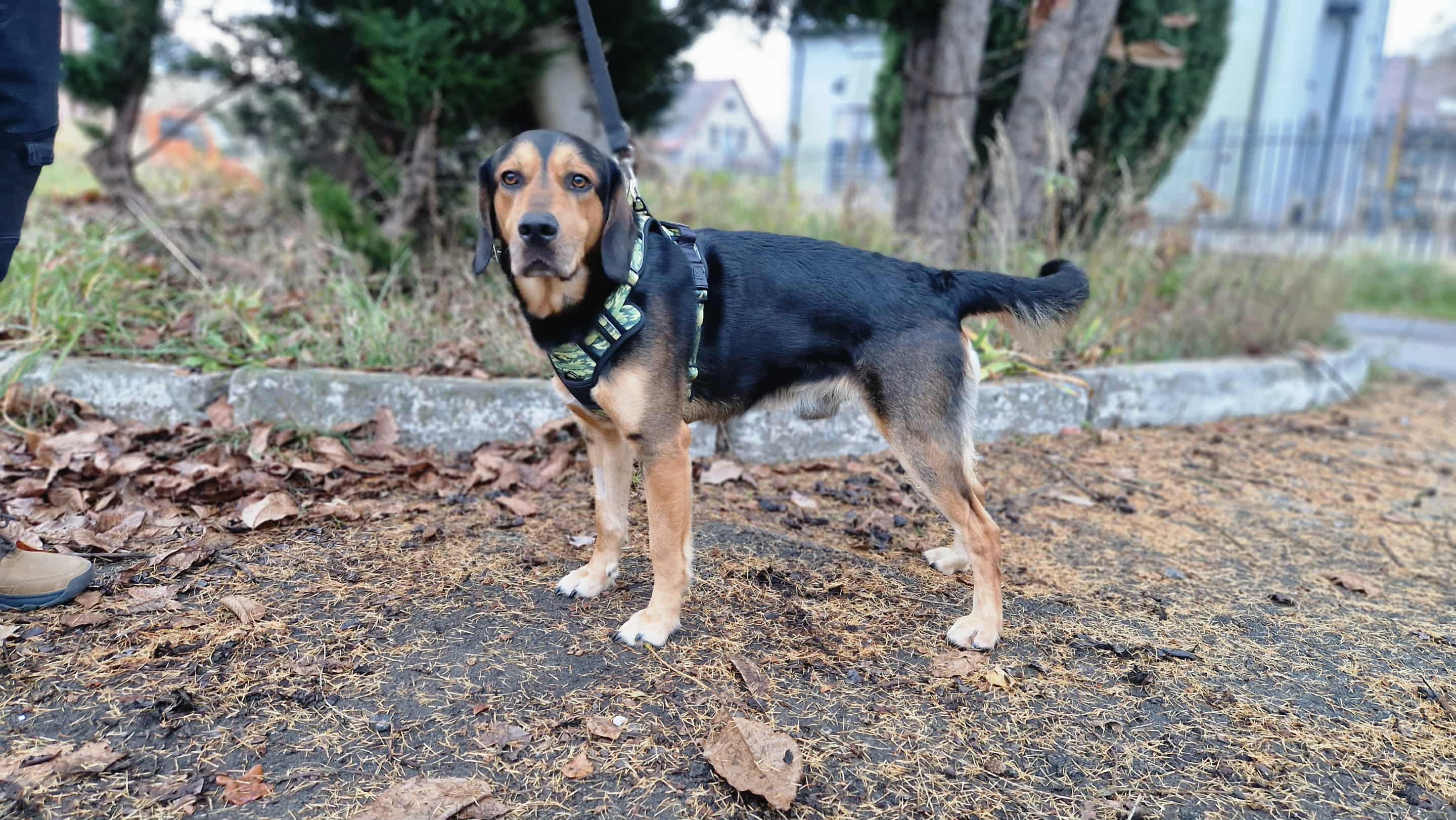 Fido to młodziutki piesek - ma około 1,5 roku. Dość spory, waży 25 kg. Płynie w nim domieszka krwi psa myśliwskiego rasy gończy polski, ale my absolutnie nie szukamy mu domu w tym kierunku...