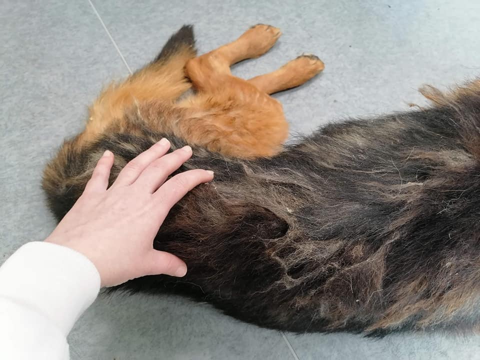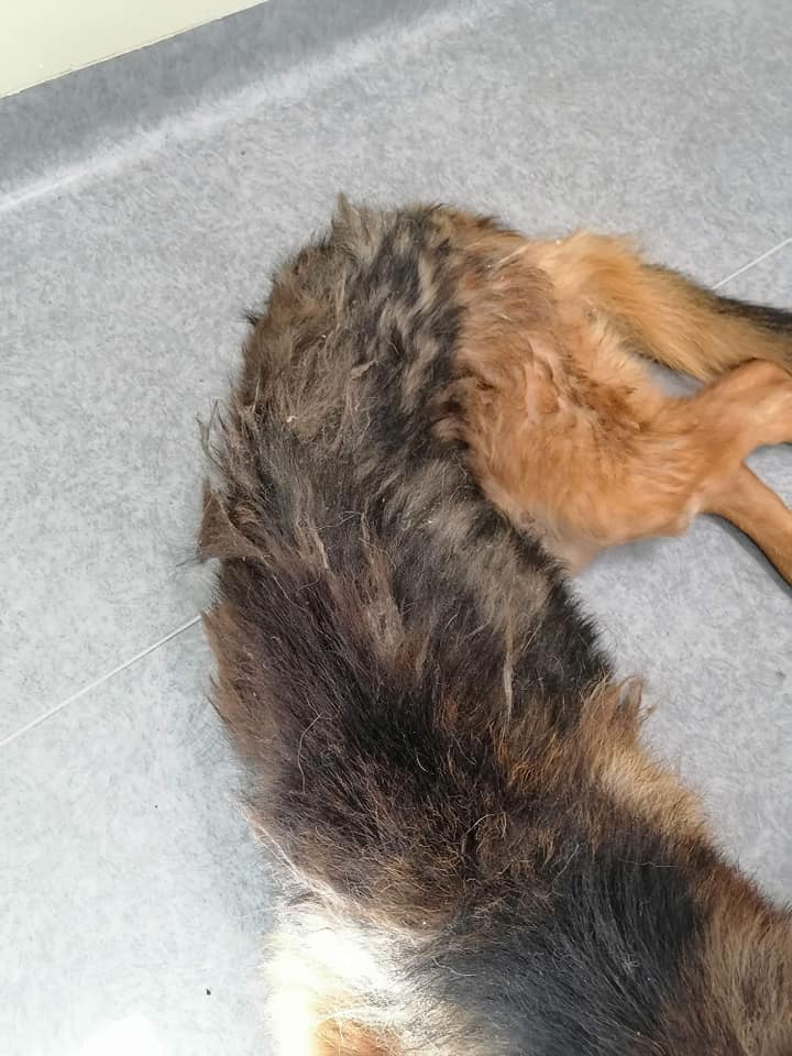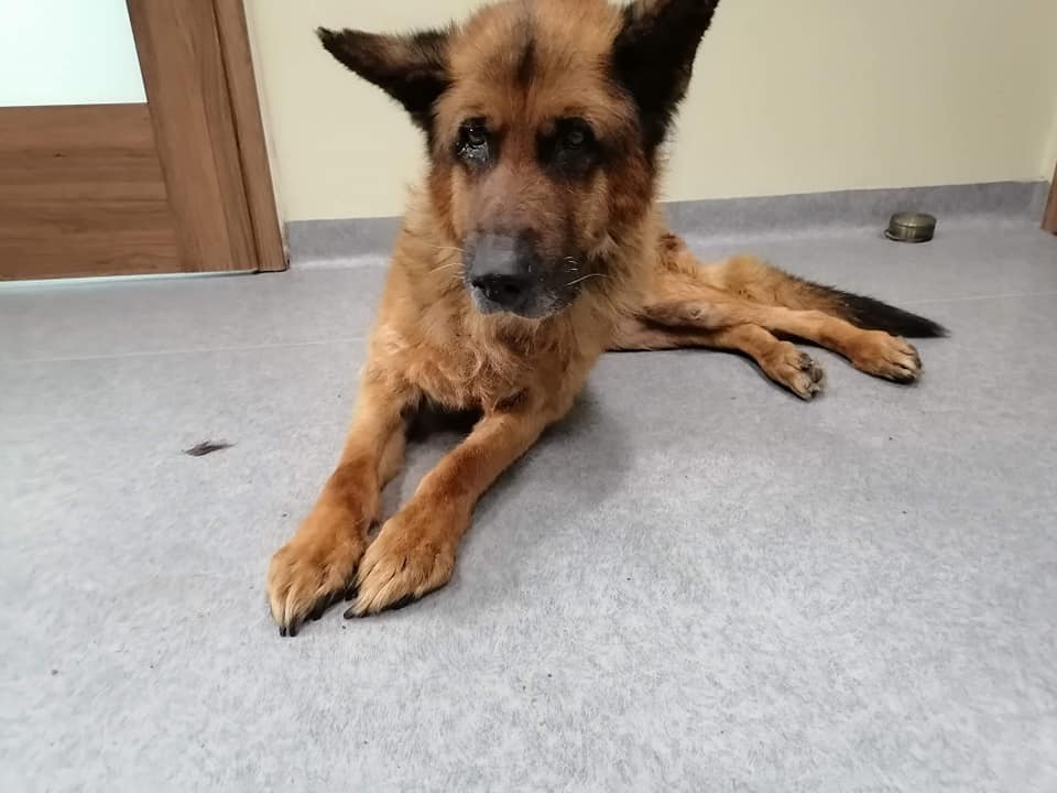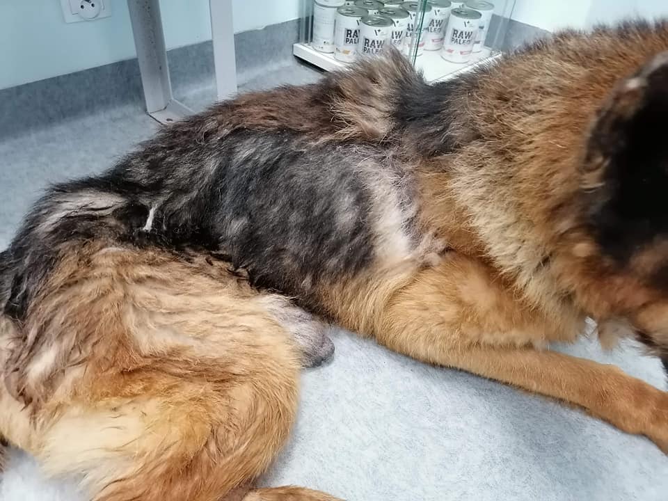 Kiedy go odbieraliśmy, nie wierzyliśmy że uda się go uratować. Ten pies to był szkielet obciągnięty wyliniałą skórą. Zapadnięte oczy, patrzące tak przeraźliwie smutno, że szloch wyrwał się i nam z gardła. Dzięki dobrym ludziom, którzy nie przeszli obojętnie nad jego powolnym umieraniem, dowiedzieliśmy się o Maksiu. I to wystarczyło, żeby mimo przepełnienia, mimo dziesiątek codziennych zgłoszeń, pojechać i odebrać to, co jeszcze z psa zostało. Żeby szczegółowo nie rozpisywać się tutaj o jego stanie, zacytujemy Wam opis weterynaryjny :