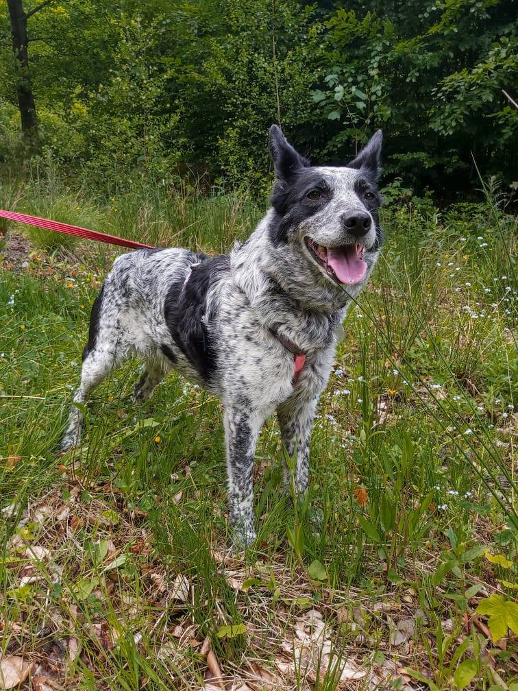 Mela to bardzo stabilna, pewna siebie sunia z dużą potrzebą pracy oraz innymi cechami charakterystycznymi dla australian cattle dog.