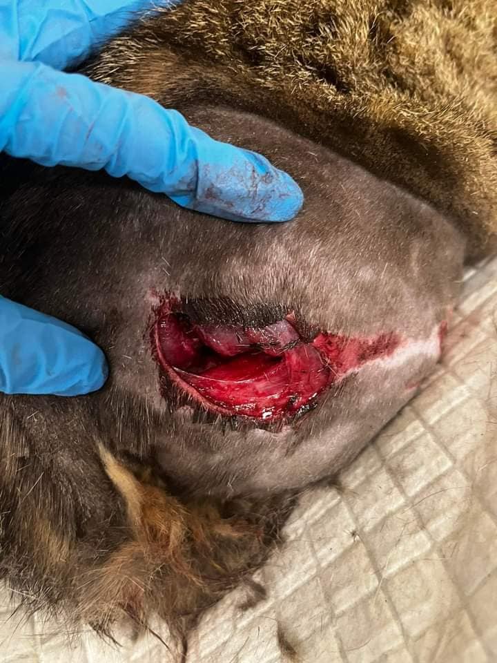 Niestety prawda okazała sie jeszcze gorsza. Kiedy w gabinecie weterynaryjnym Tosiowi ogolono ranną łapkę, oczom weterynarzy ukazał sie ogromny siniak. Już samo to dało do myślenia. Ale kiedy Tosia ułożono na stole operacyjnym i zabrano się za naprawiane "szłapci", weci nie mieli już wątpliwości.