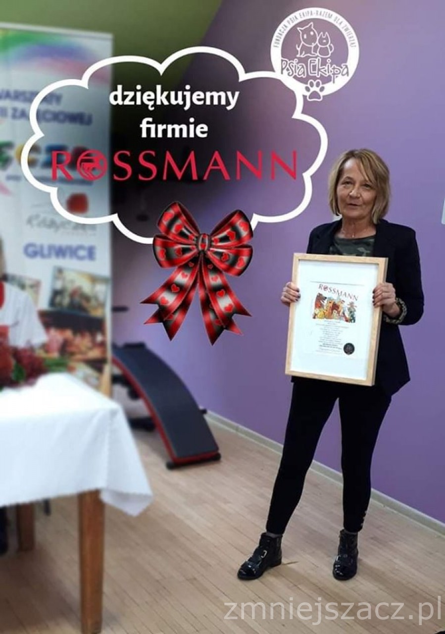 Kochany Rossmannie! Najpiękniej dziękujemy na świecie za wspaniałą akcję pomocową, dzięki której w nasze ręce trafiło WIELKIE PREZENCISKO. Wasza pomoc warta była 34 139,36 zł. Za ta kwotę mogliśmy wybra z Waszego bogatego asortymentu produkty, które pomogą naszym czworonożnym podopiecznym. 99% tej kwoty przeznaczyliśmy na karmę dla psów i kotów, oraz żwirek . Reszta zamówienia to antybakteryjne środki czystości, podkłady higieniczne. Pierwsza transza darów została wykorzystana już prawie w całości. Jesteśmy dumni, że mogliśmy być częścią akcji, której pomoc jest rzeczywista i docelowo trafia wprost do pyszczków naszych podopiecznych, oraz zwierząt, które wspomagamy podczas interwencji, Kochani Psioekipowicze i sympatycy naszych działań. Chcielibyśmy na łamach przestrzeni internetowej podziękować za wzięcie udziału w akcji Rossmanna i oznaczenie nas w aplikacji programu "Pomagamy jak umiemy"!!!!! Wasza Psia Ekipa